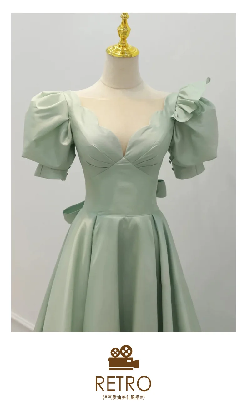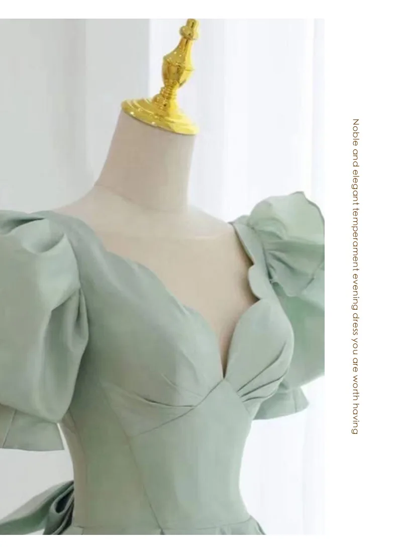 Женское вечернее платье, светильник-зеленое платье с V-образным вырезом, 2021