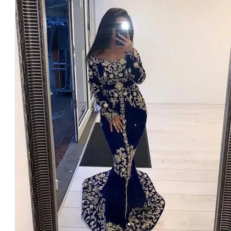 Женское вечернее платье с длинным рукавом, темно-синее бархатное ТР...