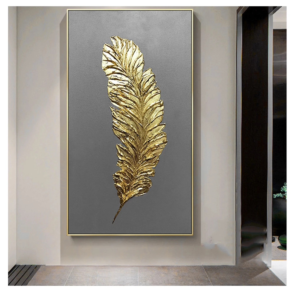 Большой Размеры современный алмазная вышивка золотой перо листья 5D Diy алмазная живопись полный квадратный круглый дрель MosaicZP-4747