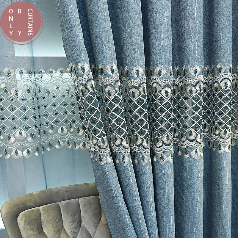 Простые затемняющие вышитые шторы в европейском стиле для гостиной, спальни, кабинета, шторы на окна, роскошный фон на заказ