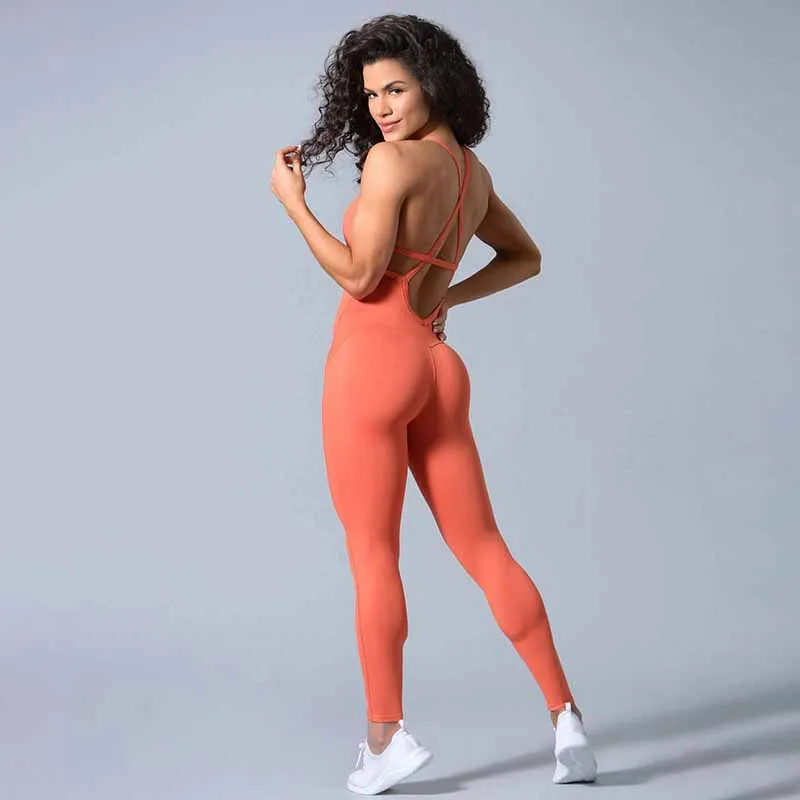 Женский комбинезон для йоги, тренировочный комбинезон с открытой сп...