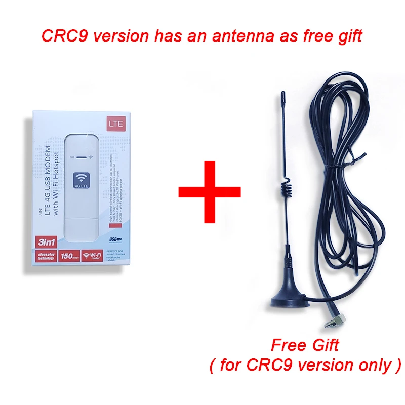 4G USB WiFi модем x 1Ручная книга x 1Игла x 1Подарочная коробка 1Бесплатный подарок внешняя антенна x 1 (только для версии CRC9)Примечание: Мы предоставляем внешнюю антенну в качестве бесплатного подарка клиентам, которые купили CRC9 версию, антенна может немного отличаться от той, что на картинке.