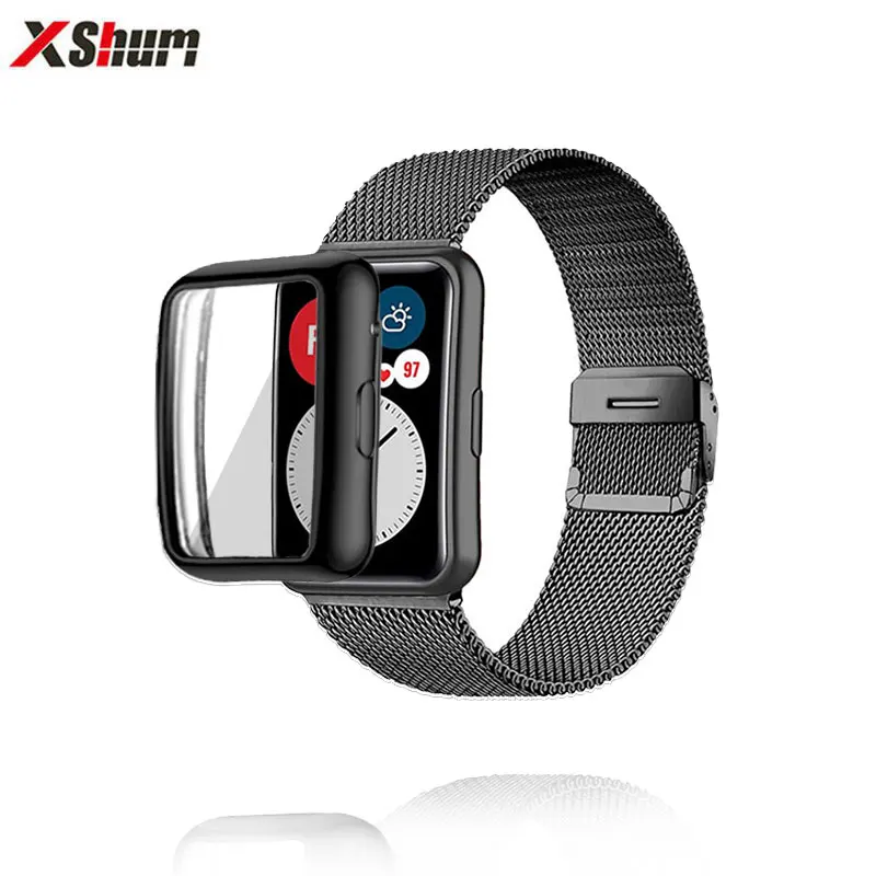 Ремешок для Huawei Watch Fit Band с чехлом, металлический браслет с...