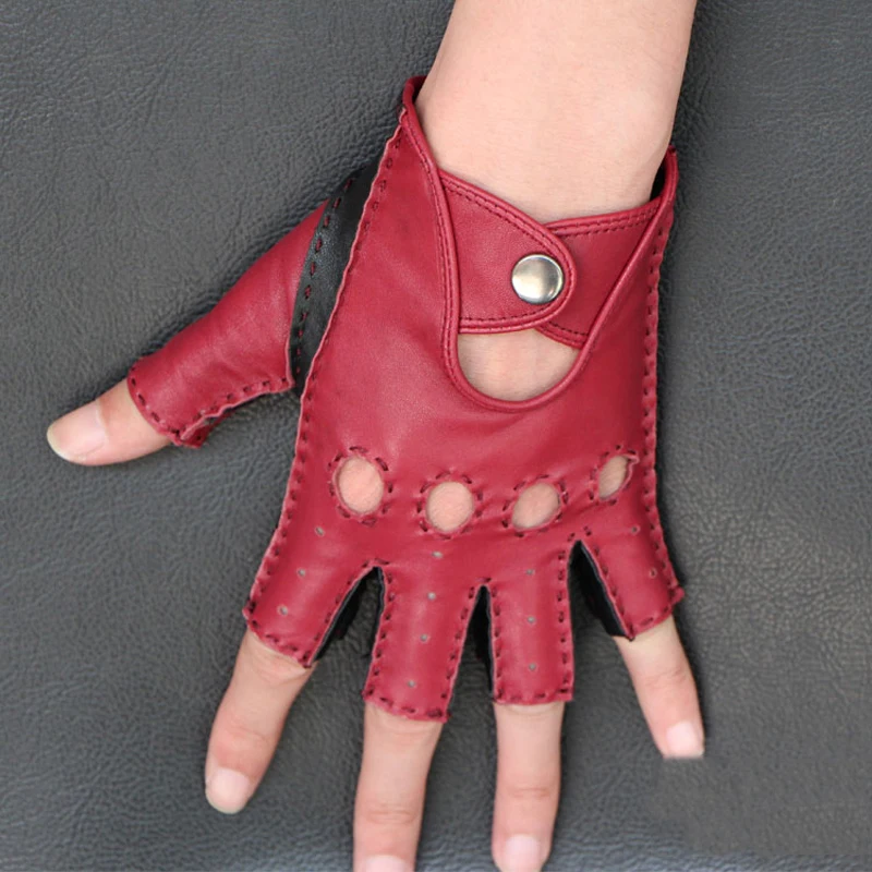 Для мужчин из натуральной кожи перчатки до середины пальцев театральные в стиле панк в стиле хип-хоп для вождения мотоцикла спортивную производительность вечерние варежки