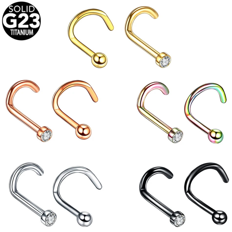Серьга-гвоздик для пирсинга носа с титановым кристаллом G23, ювелирное изделие для носа с фианитом, 18 г, 20 г, ноздрей, 1 шт.