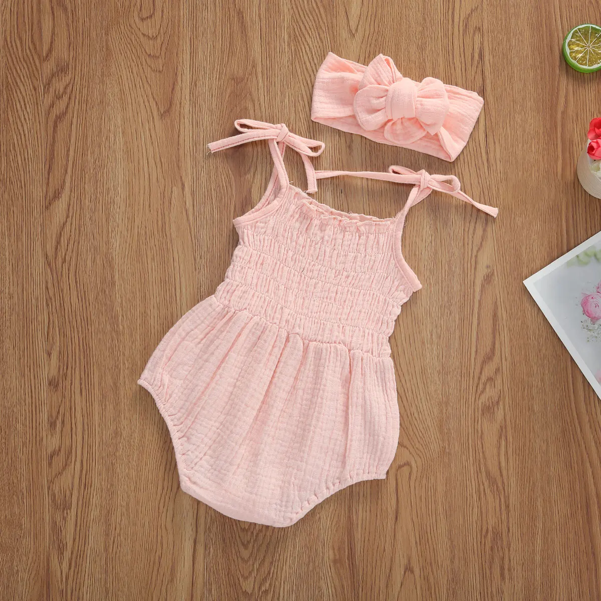 2021 летняя одежда для новорожденных девочек, однотонный наряд из 2 предметов без рукавов с открытой спиной, Детский комбинезон с повязкой-бантом