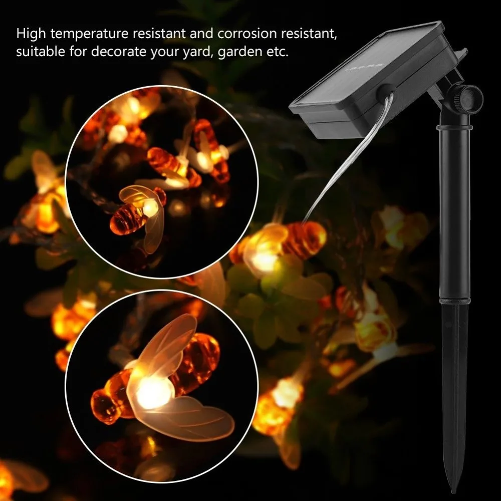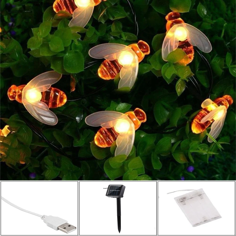 Гирлянда на солнечной батарее, в форме медовой пчелы, с USB-разъемом, для улицы, дома, сада, забора, летнее украшение