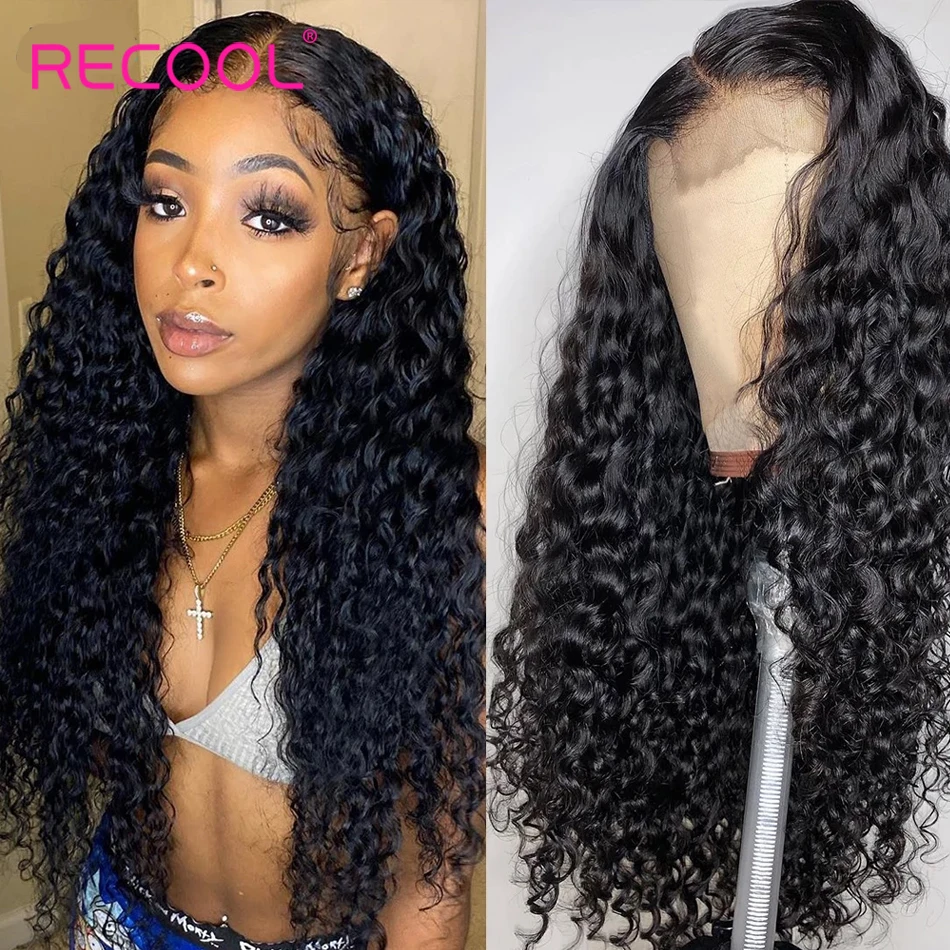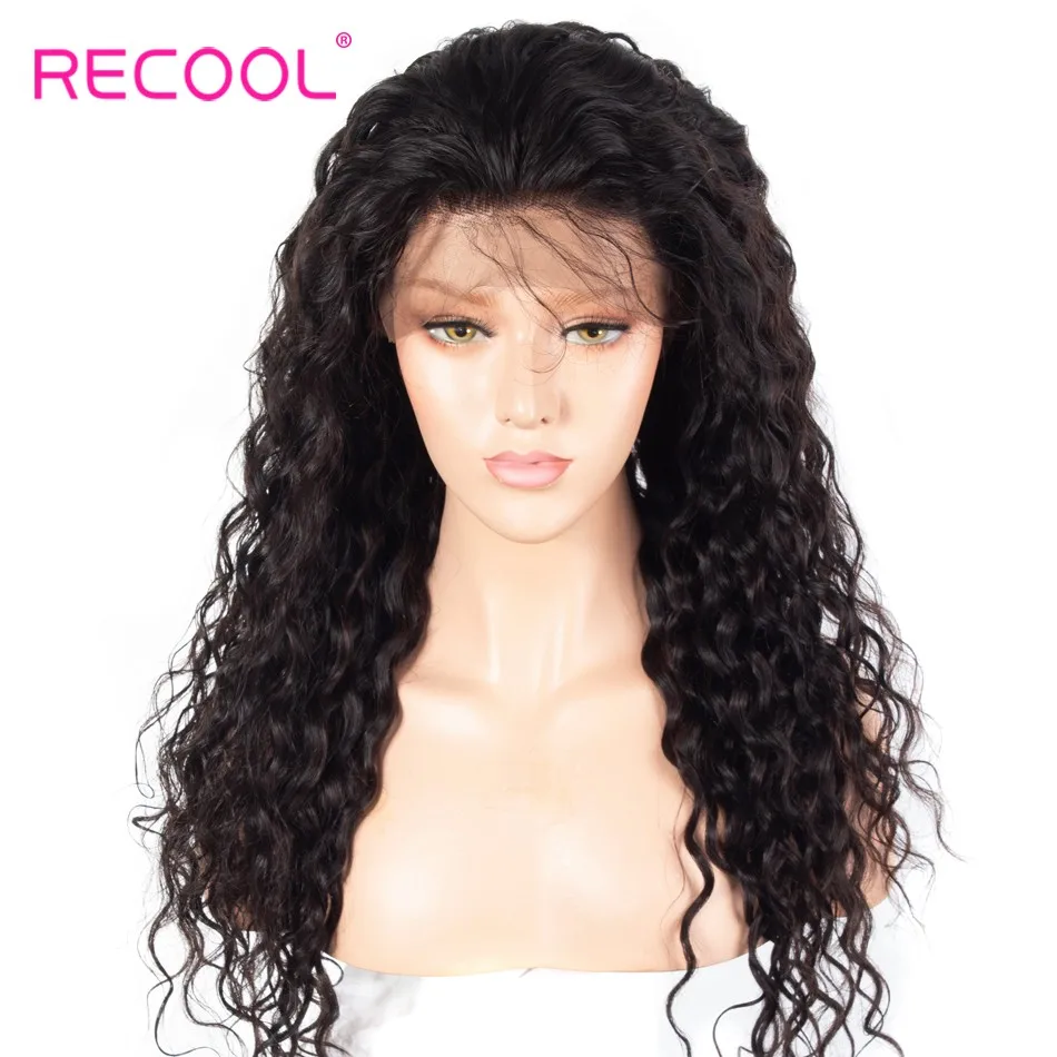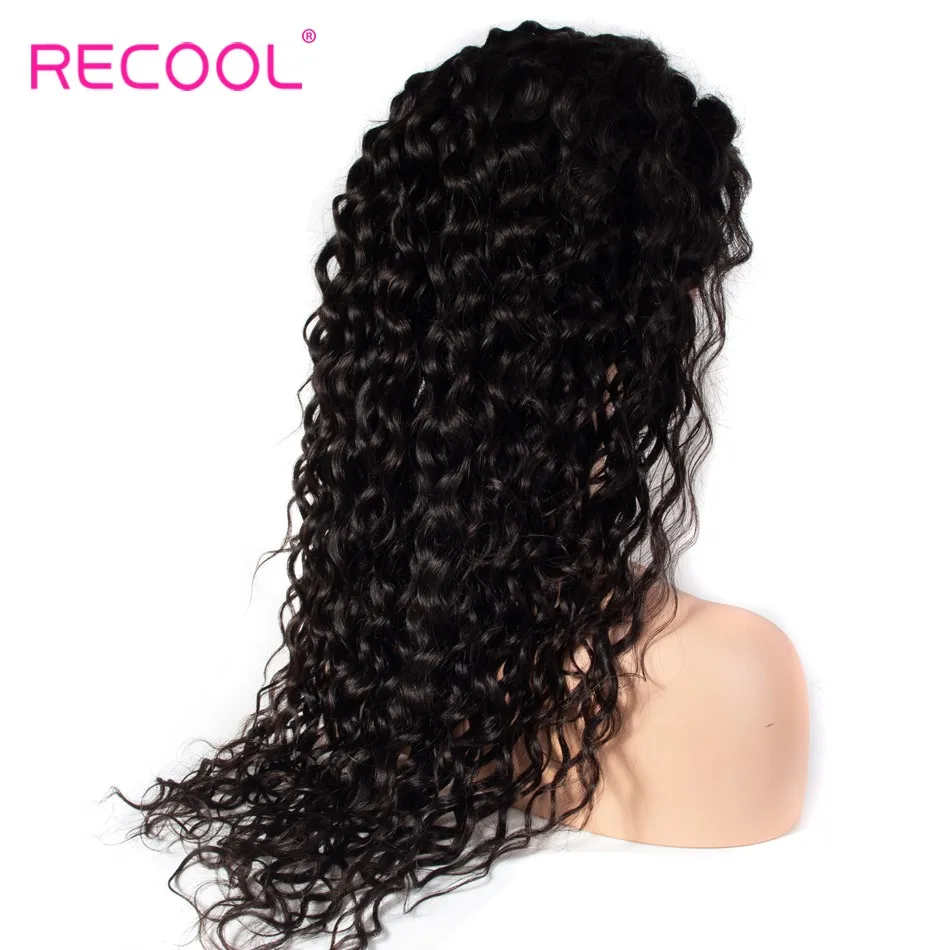 Recool воды волна Кружева Закрытие человеческие волосы парики предварительно вырезанные 200% перуанские Волосы Remy влажные и волнистые волосы 4x4 закрытие парик для Для женщин