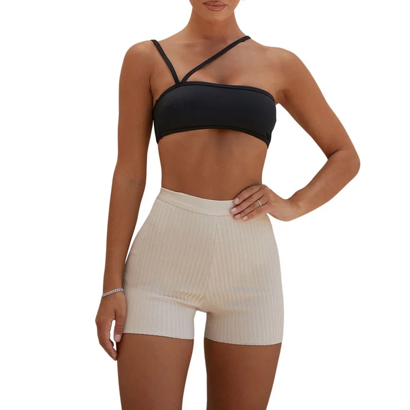 Женские повседневные мягкие удобные трикотажные шорты в рубчик с высокой талией, Однотонные эластичные модные женские короткие леггинсы, Короткие облегающие шорты для тренировок, 2022