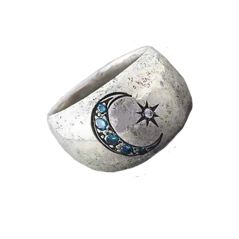 Женское маленькое кольцо с Луной и звездой, обручальное кольцо сере...