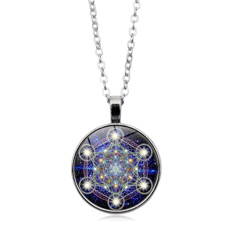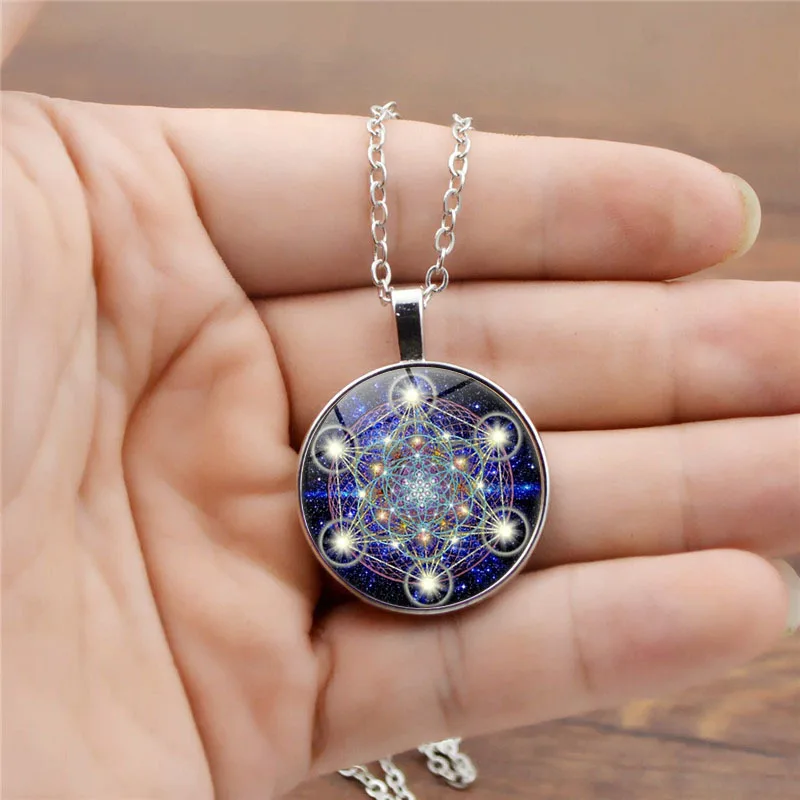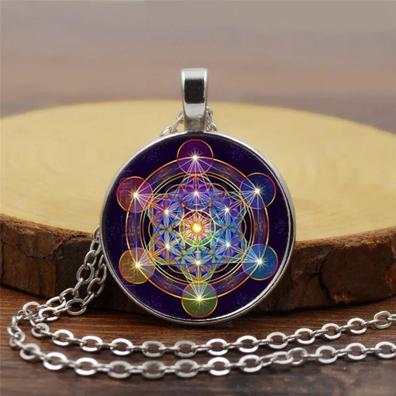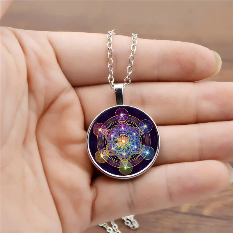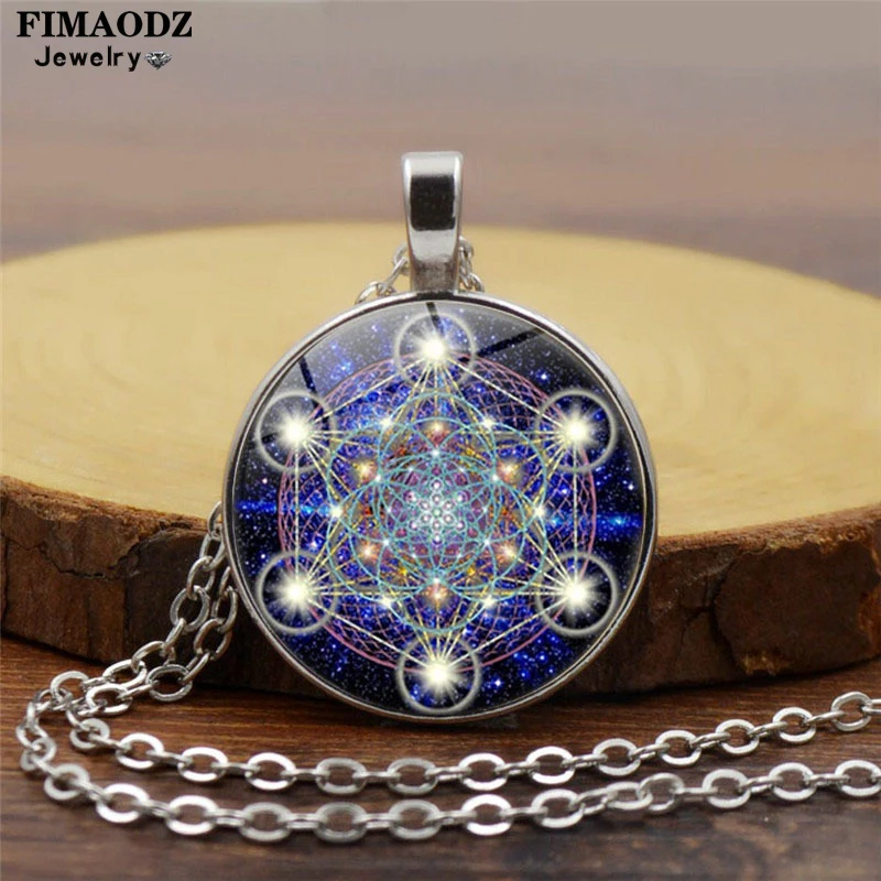 FIMAODZ Metatron ожерелье куб винтажная Сакральная геометрия цветок жизни стеклянная Хрустальная подвеска энергетическая структура украшения Вселенная