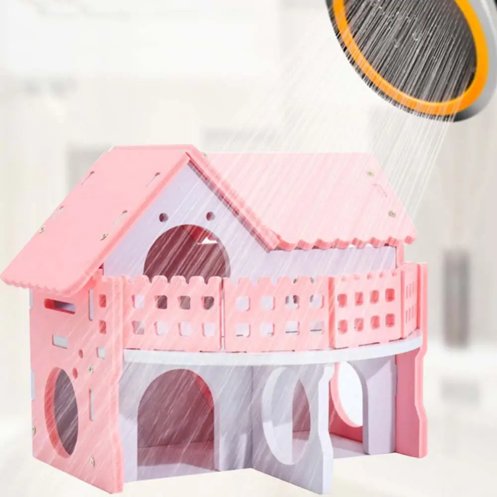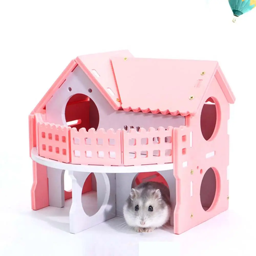 Маленькая деревянная пластиковая Двухуровневая морская свинка крыса, хомяк гнездо вилла домик маленькая клетка для домашних животных игрушка розовый замок мечта Коттедж с лестницей