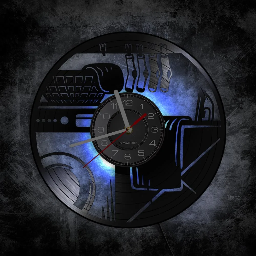 Прачечная настенные часы стиральная машина виниловых пластинок Паровая гладильная одежда домашний декор Washhouse Творческий Античная Стиль 7-Цвета светильник