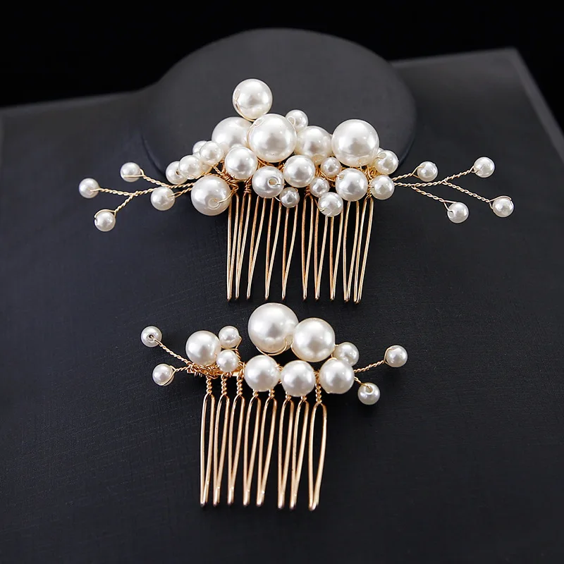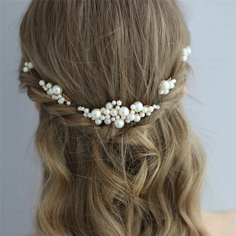 Свадебные гребни для волос с жемчужинами золотого цвета, аксессуары для невесты, цветочные U-образные заколки, украшения для волос невесты, ювелирные украшения для волос