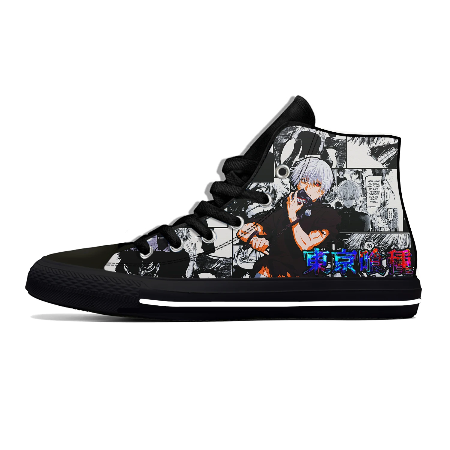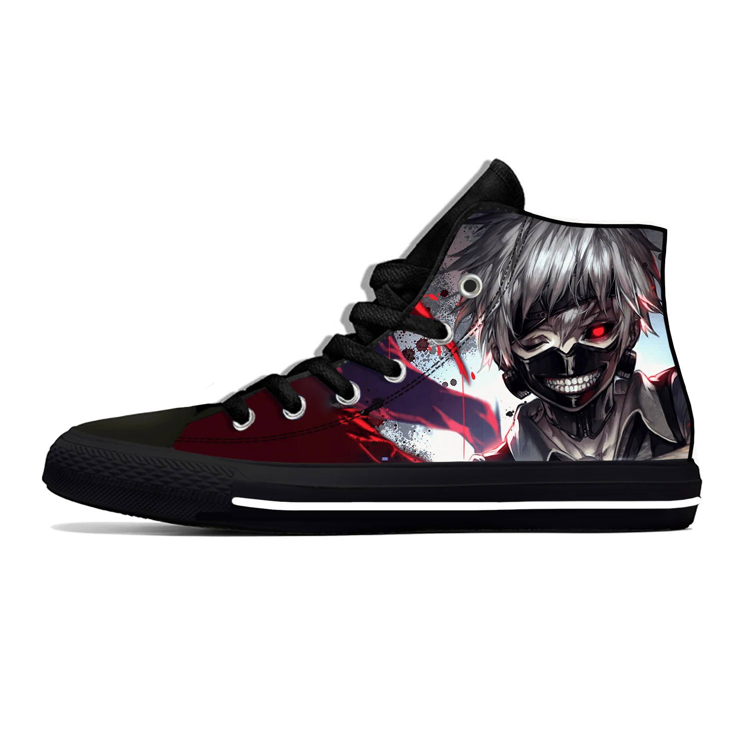 Кроссовки с высокими берцами для мужчин и женщин, тканевая повседневная обувь с японским Аниме Манга канеки Кен Токийский Гуль, Забавный принт, дышащие легкие кеды