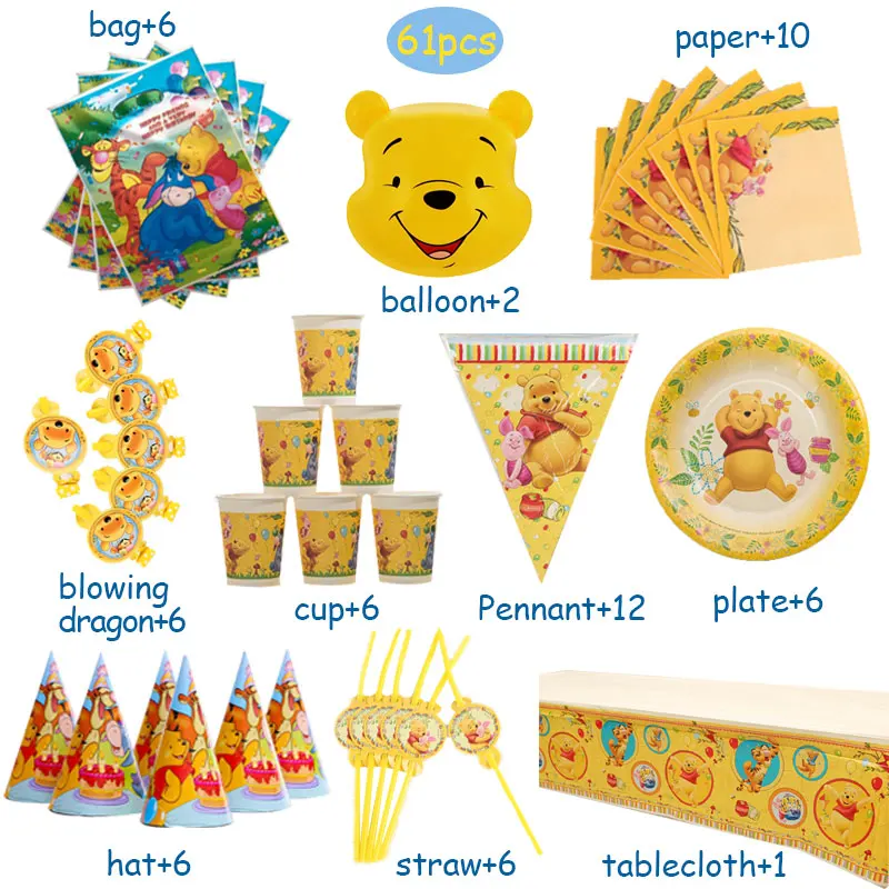 61 шт.лот набор украшений в стиле Диснея Винни-пух для вечевечерние НКИ Набор для украшения дня рождения принадлежности для вечерние ского дня рождения упаковка для праздвечерние