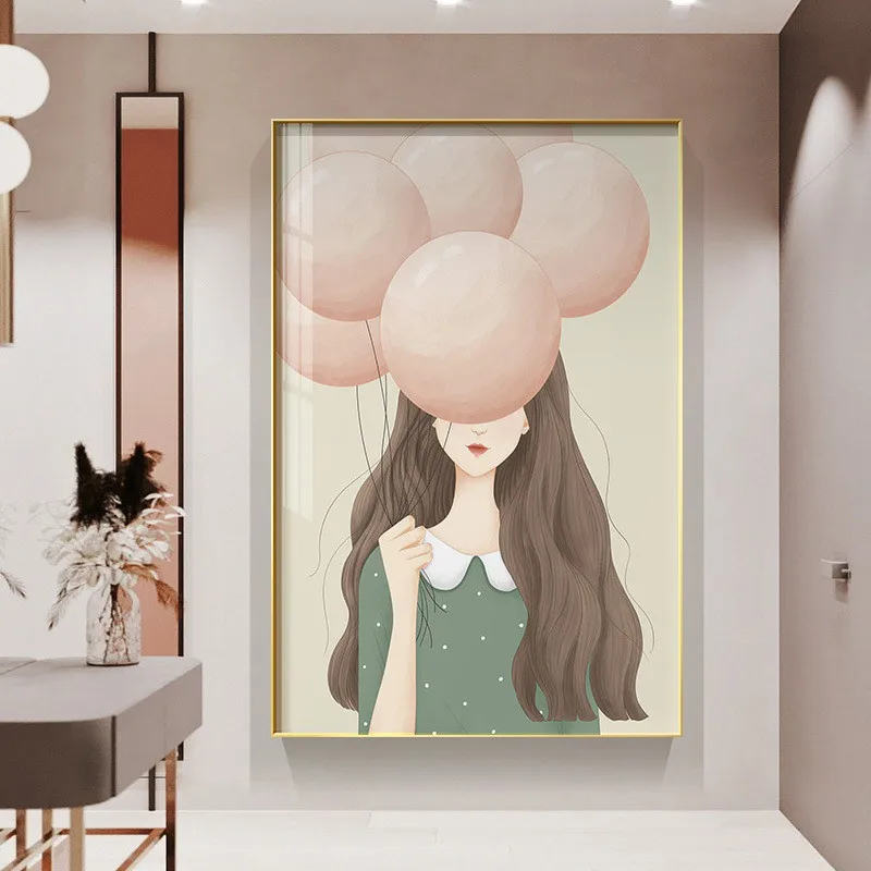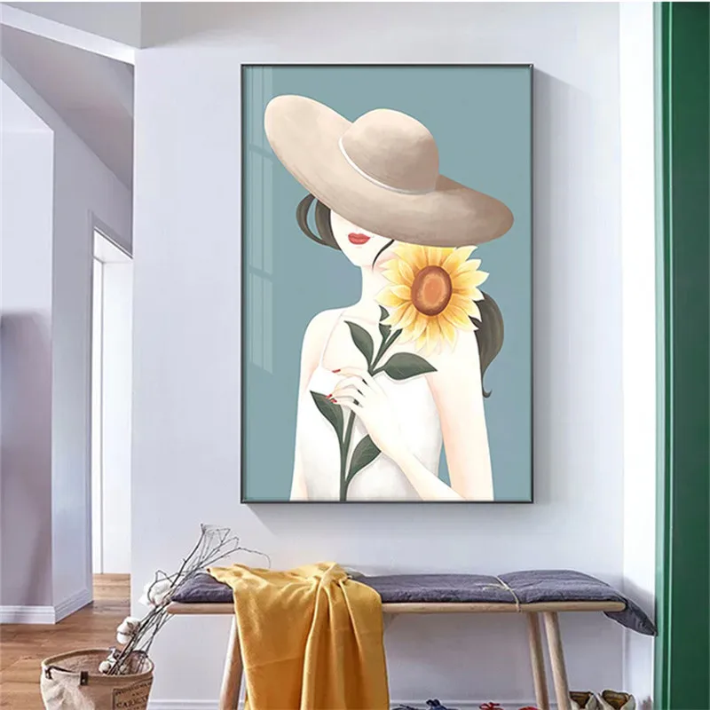 Картина с изображением девушки, воздушный шар в форме подсолнечника, Современная декоративная картина, холст, настенный художественный плакат для гостиной, домашний декор icon star icon star icon star icon star icon star