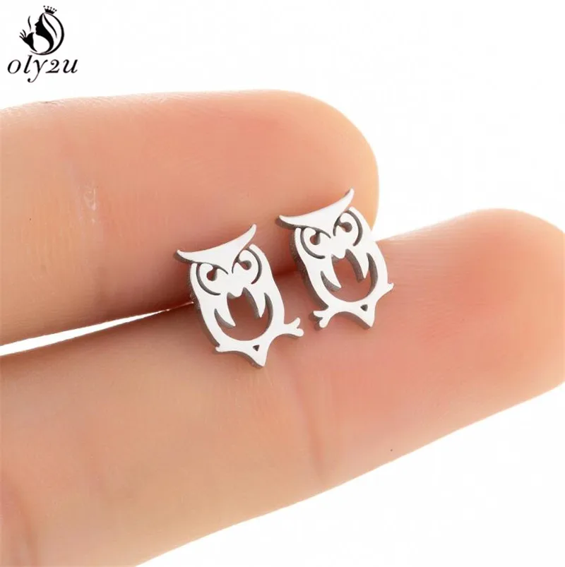 С рисунками зверей из мультфильмов, серьги со шпилькой, для женщин, несколько из нержавеющей стали сова Кита кошка слон серьги, модное ювелирное изделие аксессуары