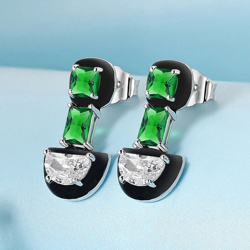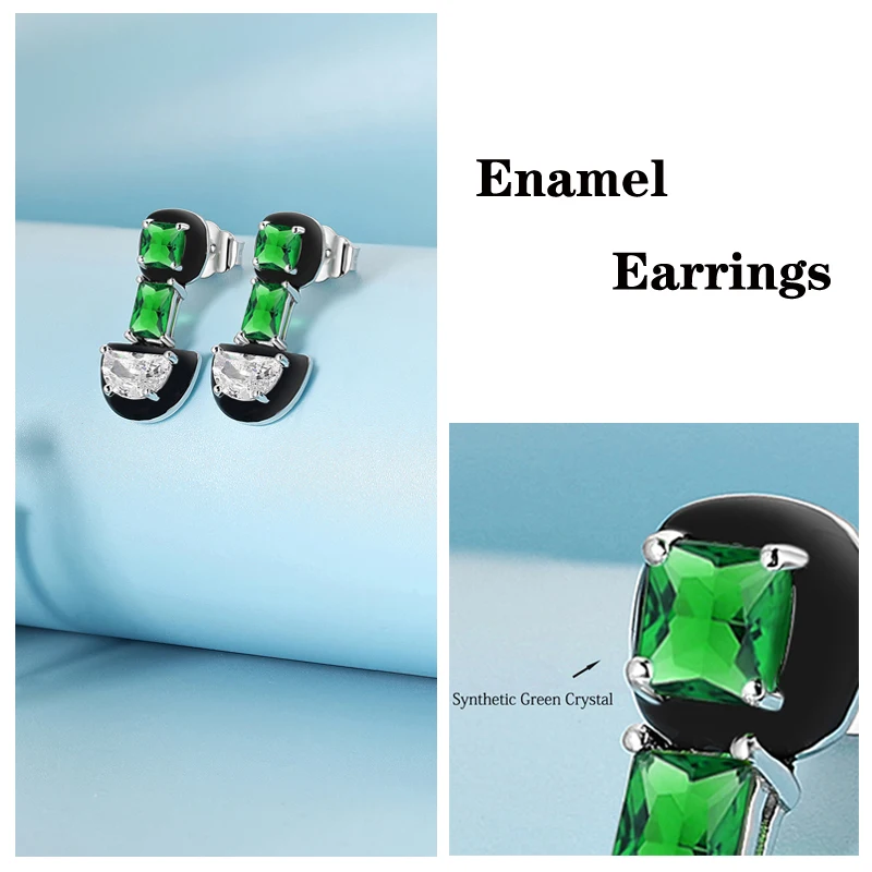 Женские серьги-подвески из серебра 925 пробы, с зеленой эмалью