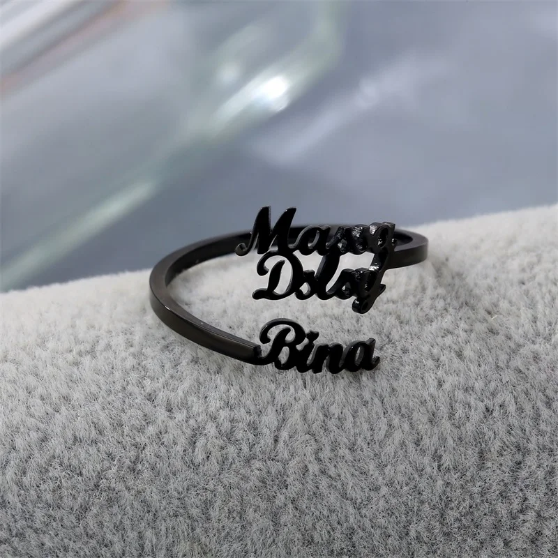 Кольца с двойным именем на заказ, регулируемые черные кольца из нер...