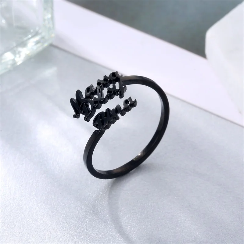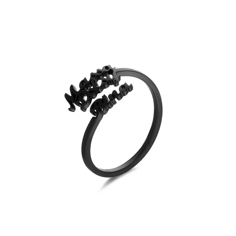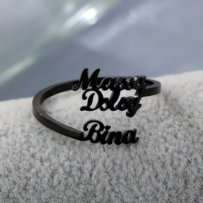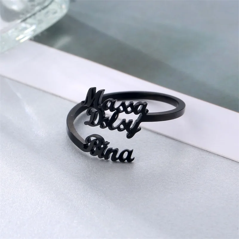 Индивидуальное кольцо с двойным именем кольца Регулируемый Черный ц...