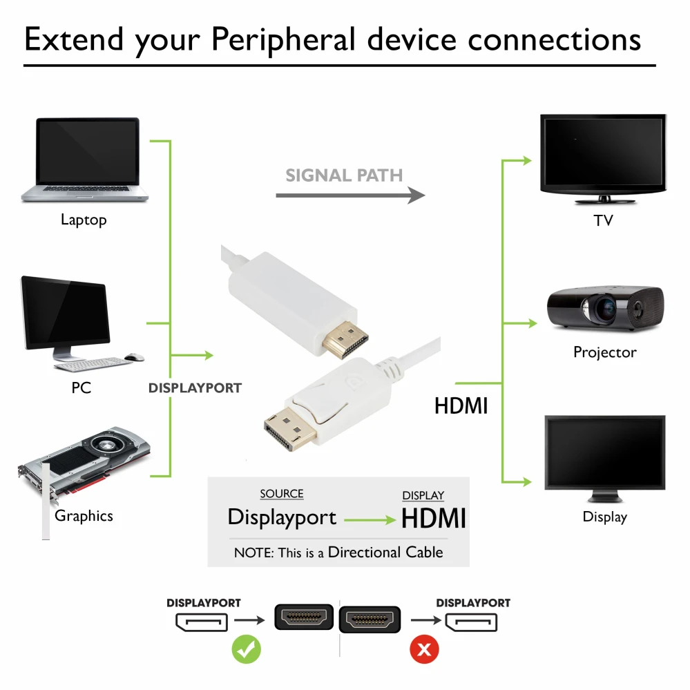 Подключение оборудованных DisplayPort компьютеров/устройств к телевизорам с поддержкой HDMI Поддержка разрешения монитора до 1920x1200 и поддержка разрешения HDTV до 1080p Подключение HDMI к displayport без адаптера Поддерживает аудио и видео Ничего для установки просто подключи и работай