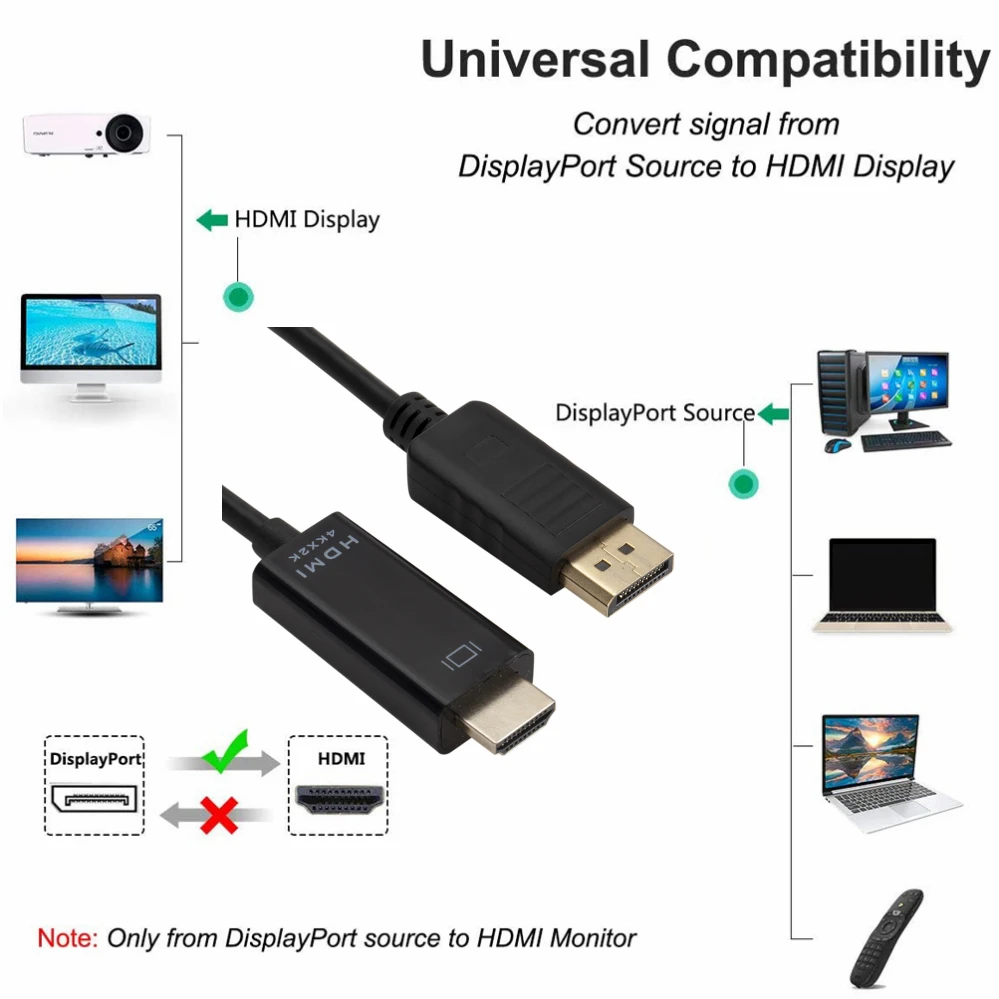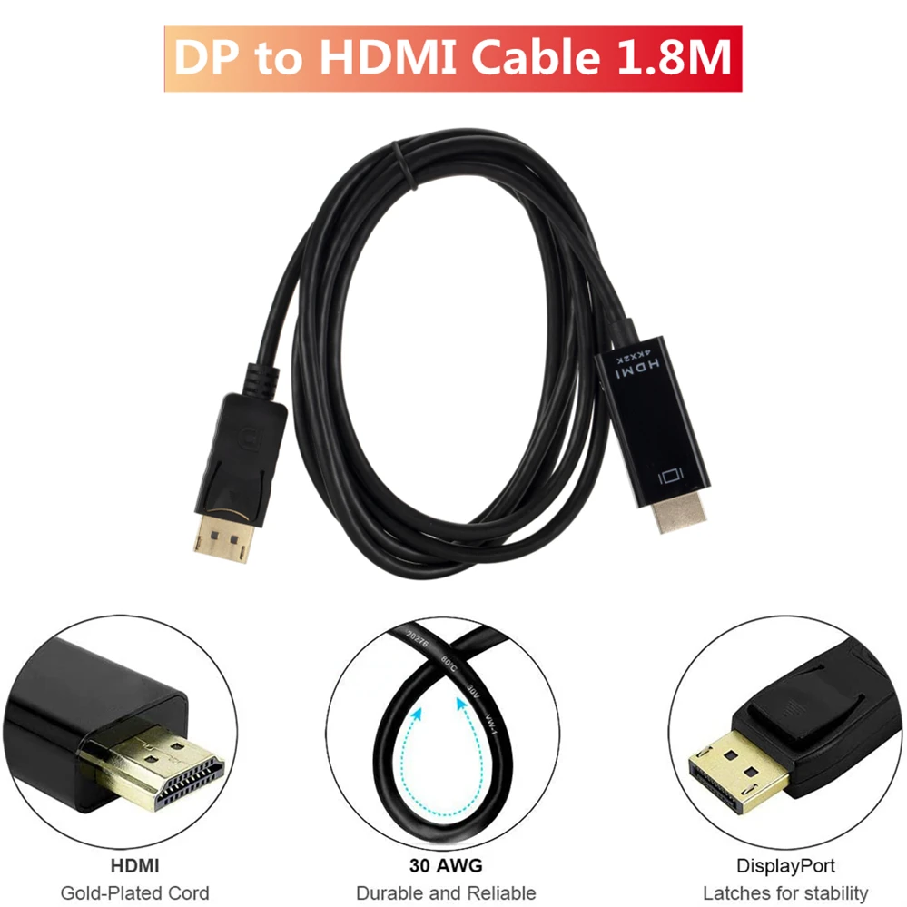 PzzPss 6 футов порт дисплея к HDMI 4K * 2K 30Hz Кабель DP-HDMI для ПК ноутбука HDTV проектор Видео Аудио кабель порт дисплея к HDMI
