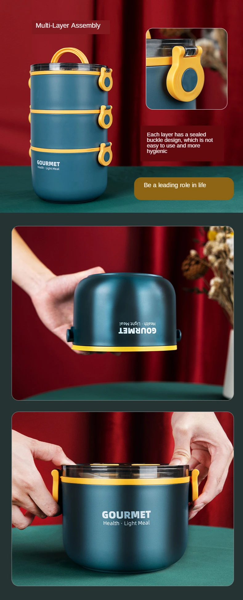 Имя: Bento BoxМатериал: пластик + нержавеющая стальЦвет: красный/темно-синий/зеленыйПрименение: на открытом воздухе, пикник, офис, школаНазначение: Ланч-бокс и ингредиенты можно нагревать в микроволновой печи (крышку нельзя нагревать вместе)