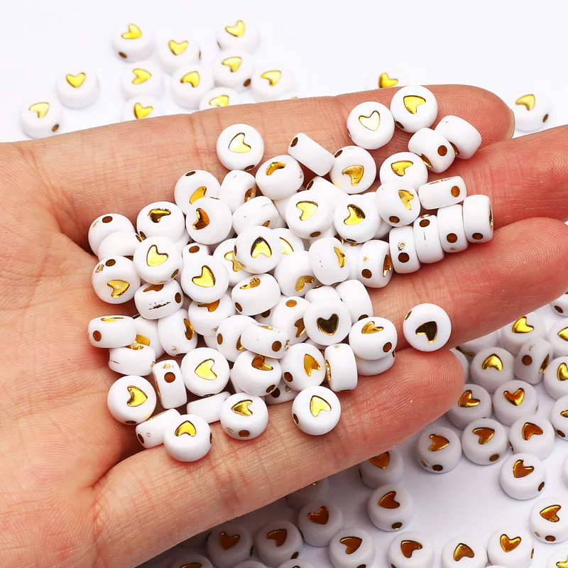 Круглые акриловые бусины с золотым сердцем 4x7 мм, белые бусины с о...