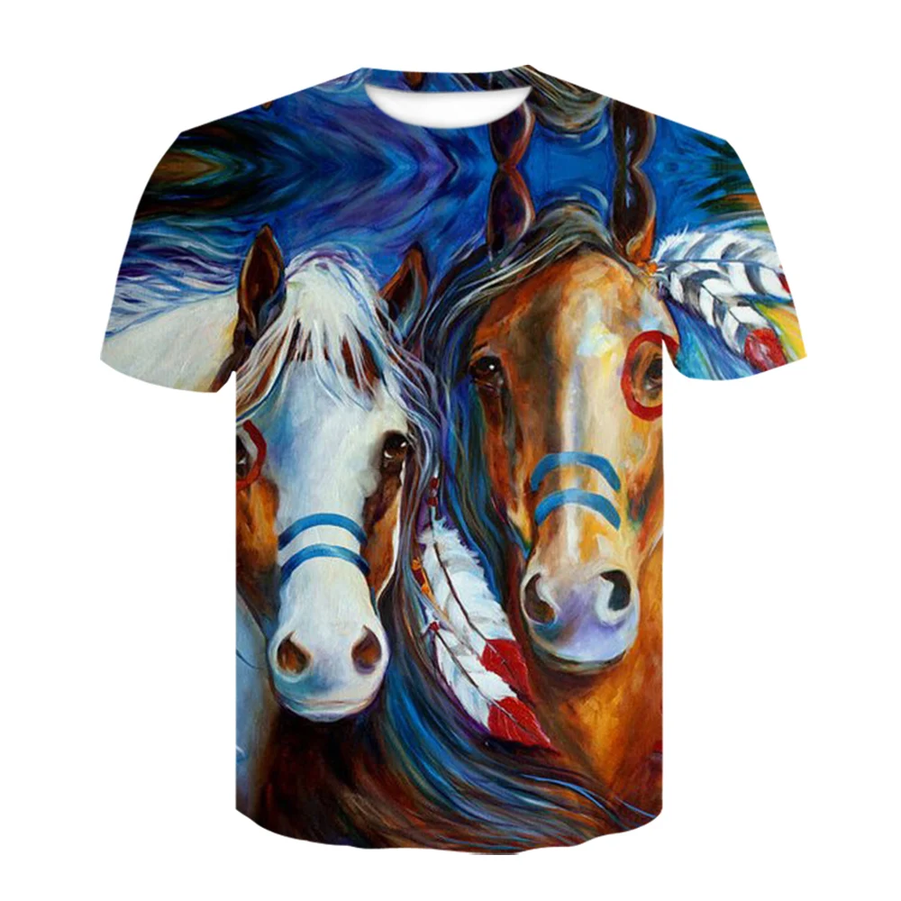 Летняя Новинка, 3D футболка с рисунком одежда O-Neck Horse, модные ...