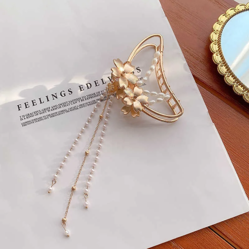 Крупные металлические заколки для волос, жемчужная цепочка, заколки...
