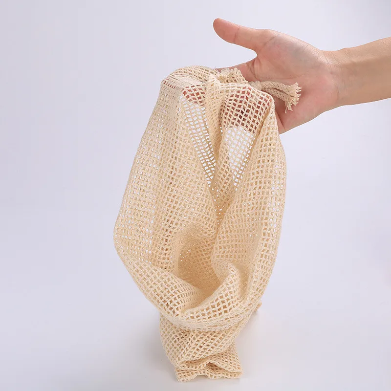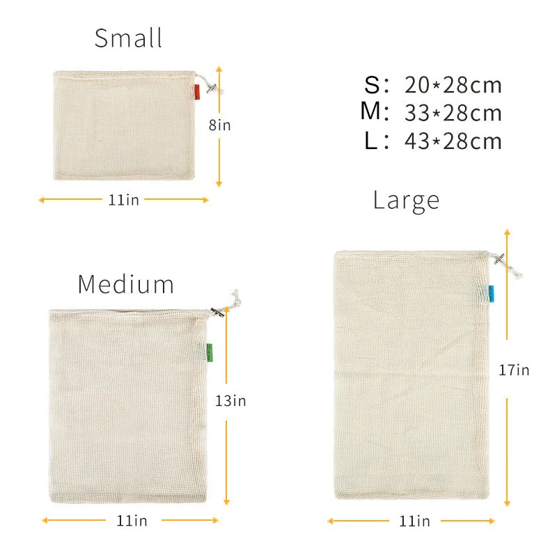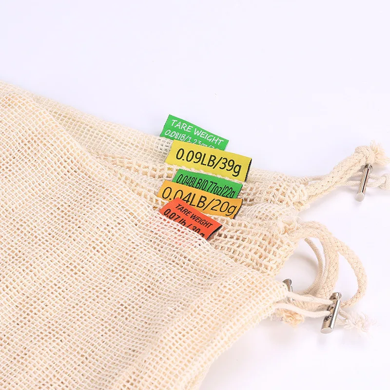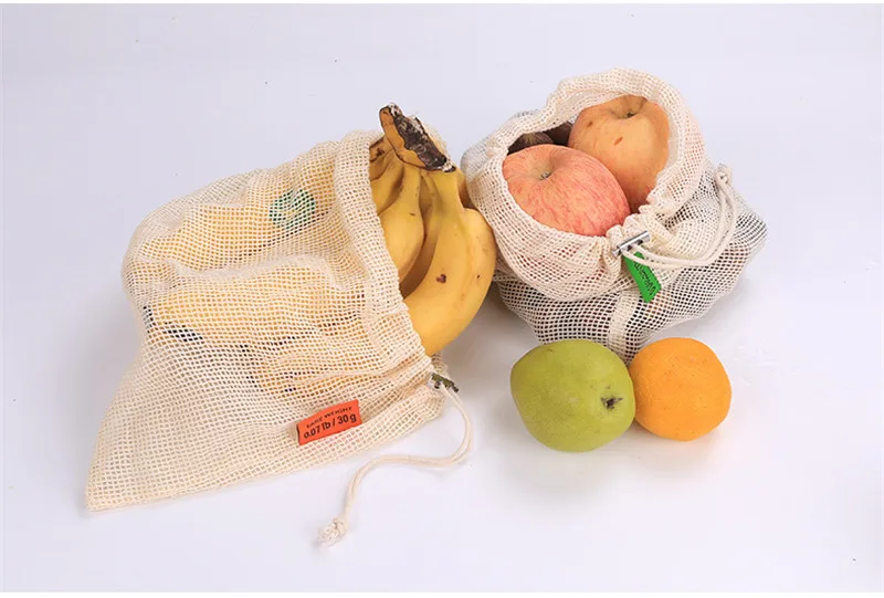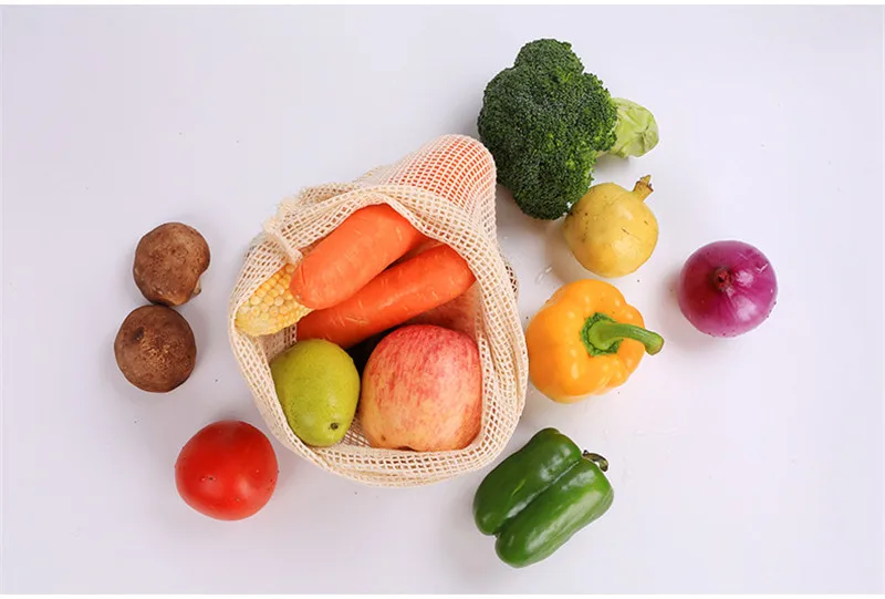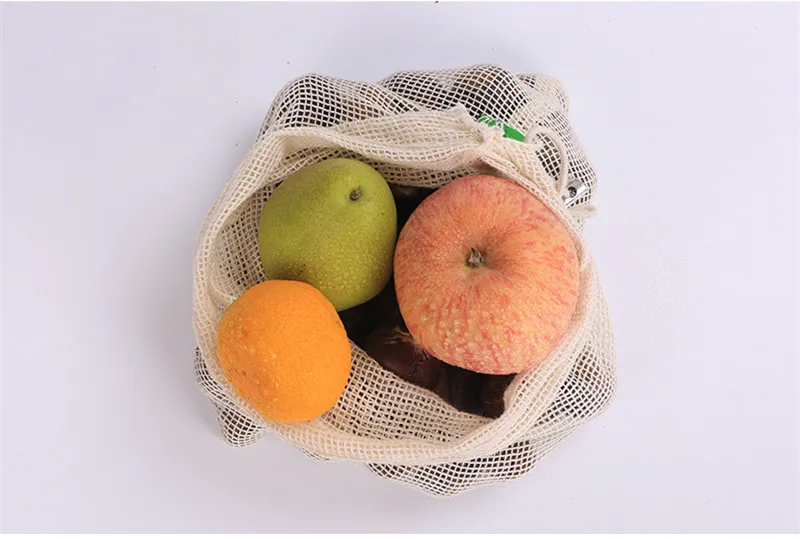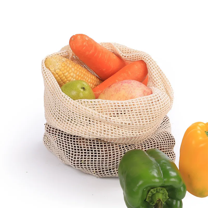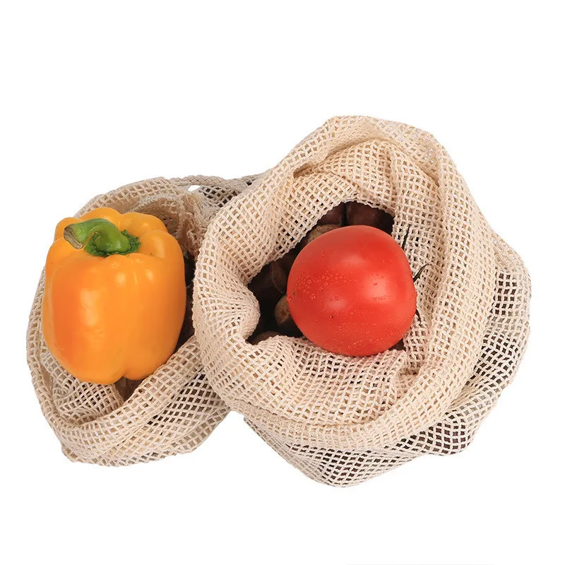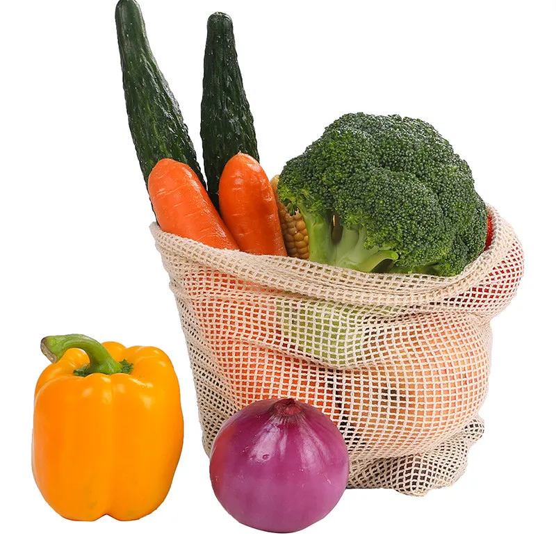 Многоразовые хлопковые мешки для овощей, сетчатые мешки для хранения фруктов и овощей, на шнурке, экологически чистые, можно стирать в стиральной машине