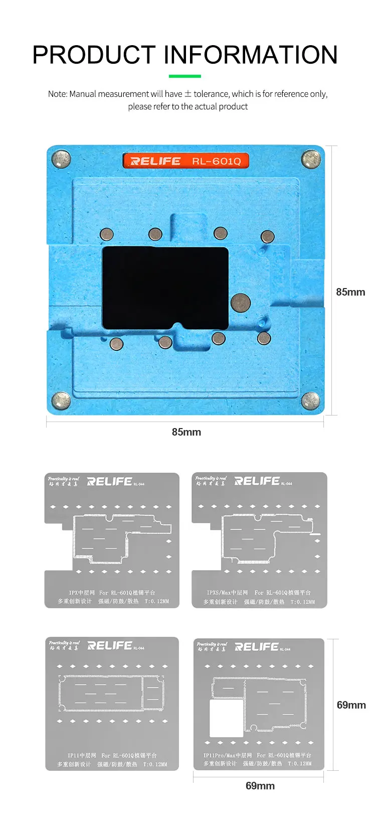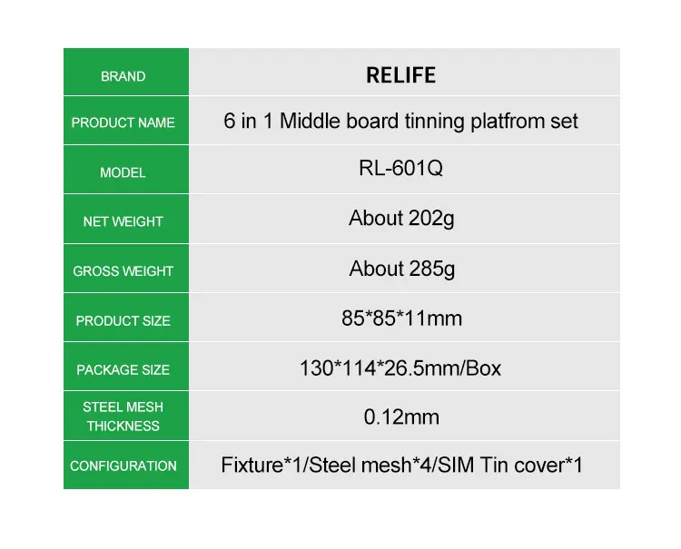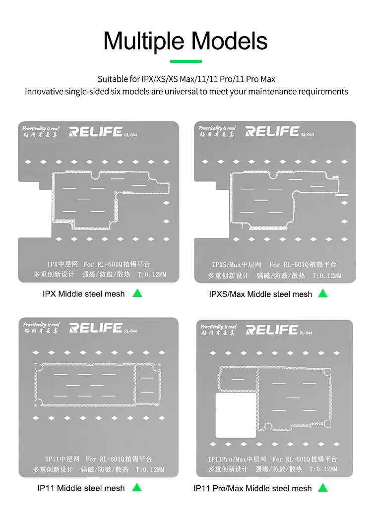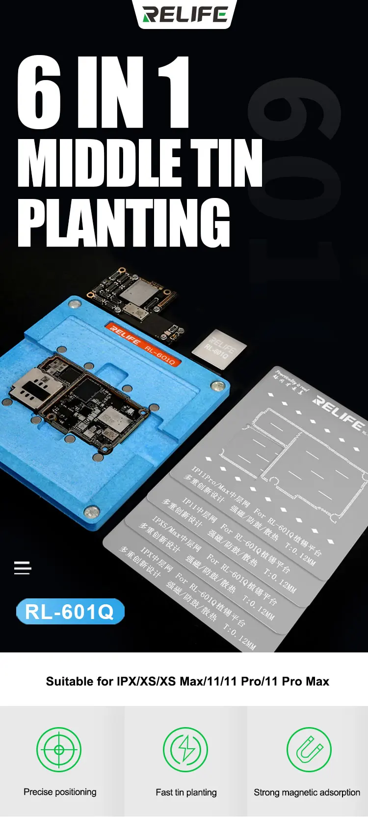 Трафарет для реболлинга RELIFE RL-601Q 6 в 1 для iPhone X, XSMAX, 11 RPO MAX, материнской платы