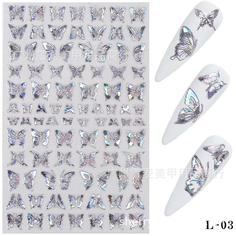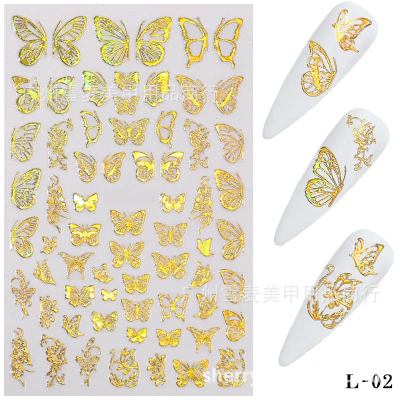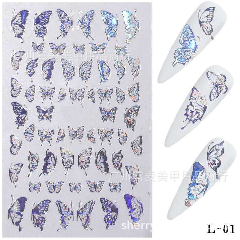 Голографические 3D наклейки в виде бабочки для дизайна ногтей клейкие слайдеры цветные Переводные картинки для ногтей золотистые фольги украшения