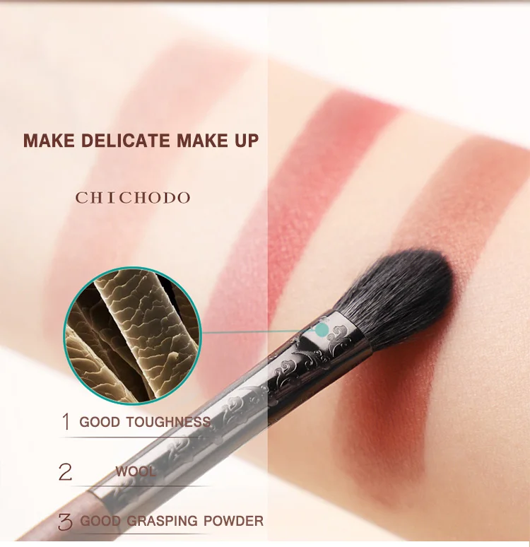 Кисть хорошо справляется со своей задачей. Использовать удобно и комфортно, в руках при использовании не скользит. Постороннего запаха нет, ворс мягкий и приятный (при этом сохраняет упругость), не царапает кожу и не колется, не лезет, набит плотно. Ручка деревянная, покрыта лаком. На ручке имеется надпись – CHICHODO (наименование бренда), нанесена черным цветом. Между ручкой и самим ворсом идет вставка темного цвета с красивым рисунком. По шла кисть в красивой коробочке. При пересылке ни кисть, ни коробочка не пострадали.