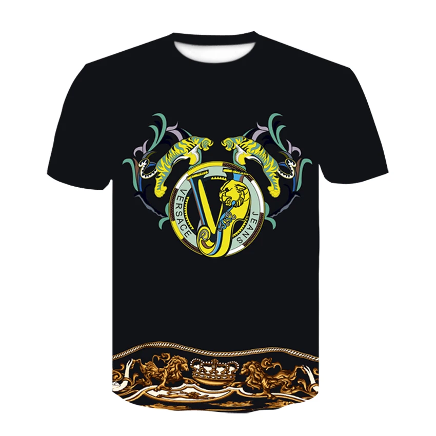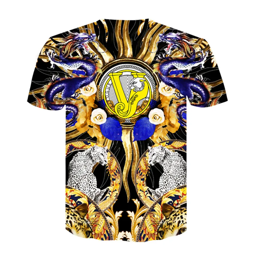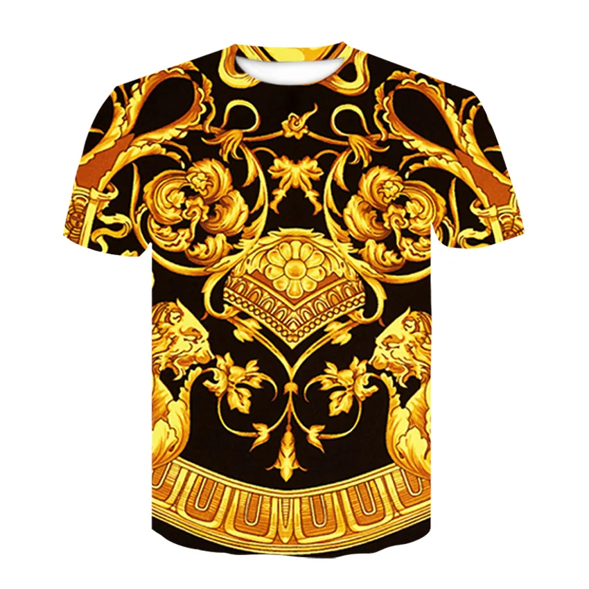 Новая летняя футболка в стиле барокко, футболка с 3d-цифровым принтом для мужчин и женщин, винтажная Роскошная брендовая футболка с золотыми цветами, camisetas