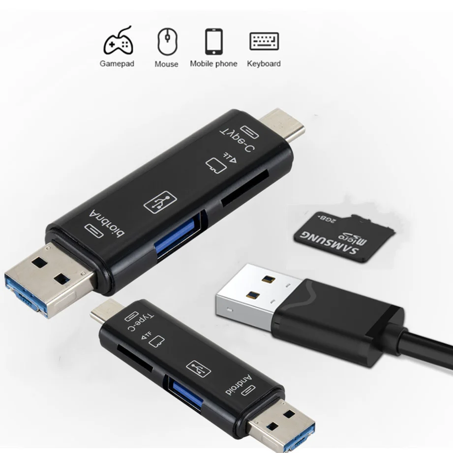 Type C и Micro USB 5 в 1 OTG кардридер флэш-накопитель высокоскоростной USB Универсальная OTG TF карта для Android телефона компьютера