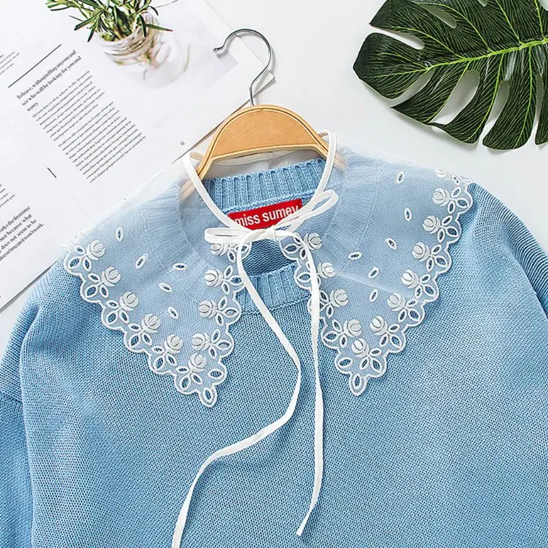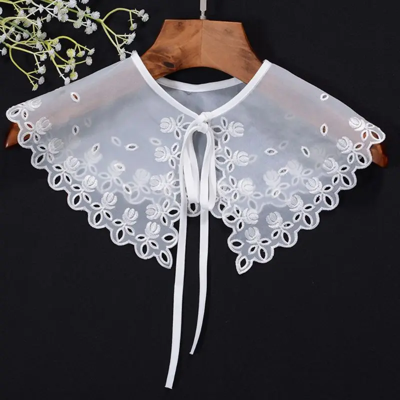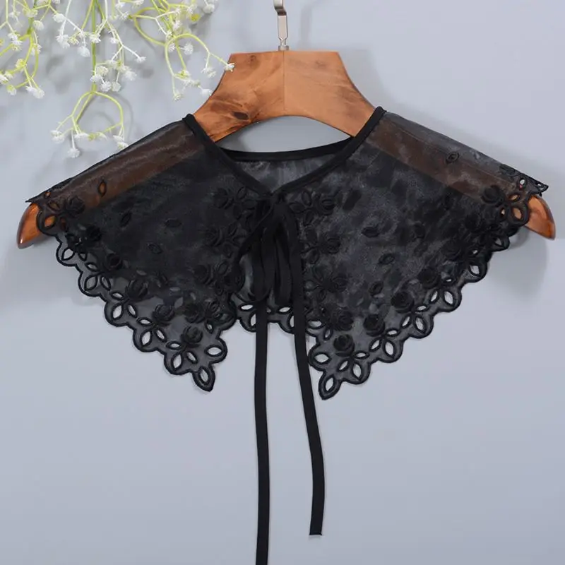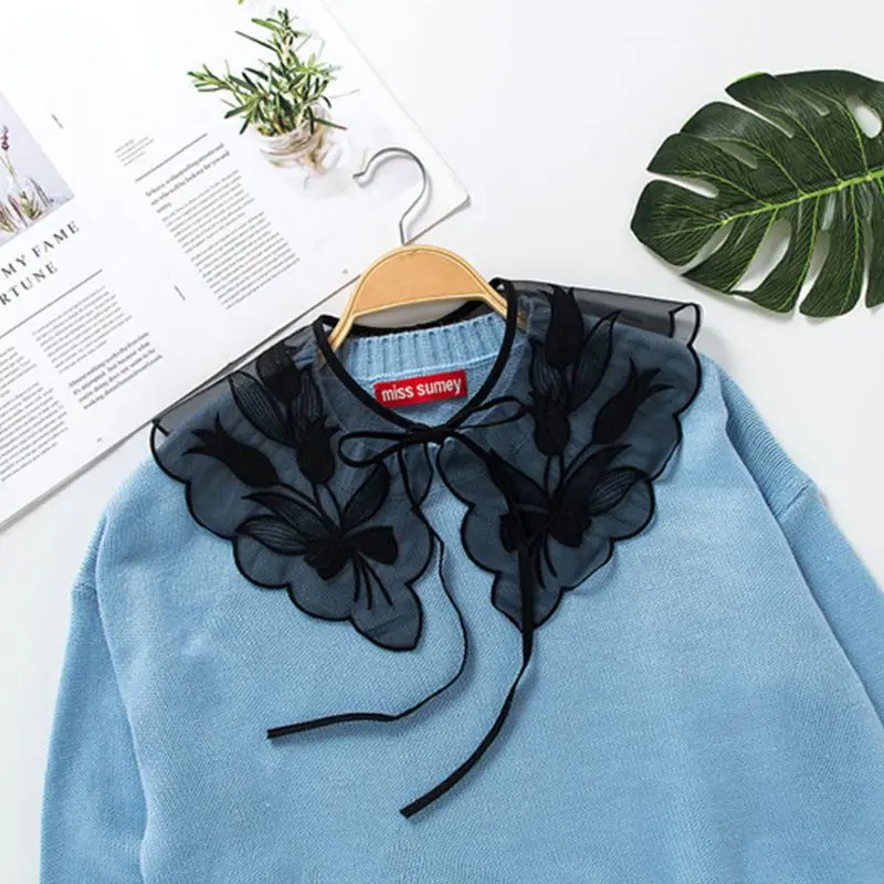 Шифоновая кружевная имитация воротника в европейском стиле для женщин и девочек, двухслойный декоративный чокер с цветочной вышивкой, блузка, шаль, галстук-бабочка