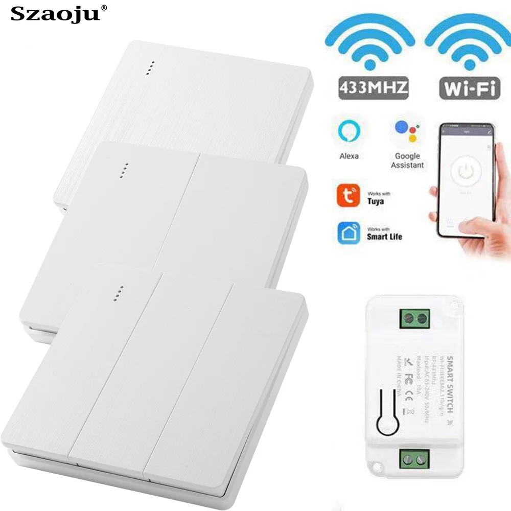Szaoju светильник приложение Smart Life приложение Tuya переключатель Wi-Fi пуш-ап РЧ пульт дистанционного управления Управление 433 МГц настенный релейный модуль с таймером Google Home ECHO Alexa 220V