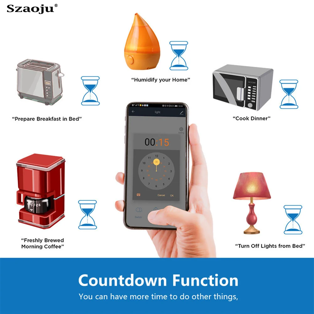 Вы можете установить обратный отсчет для увлажнителей, микроволн, кофемашин и многого другого. Устройство автоматически остановится. Не беспокойтесь о том, что устройство работает постоянно
