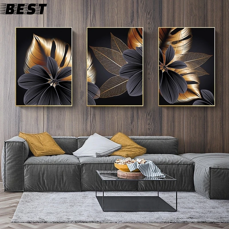 Плакат на холсте с изображением черных и золотых растений, Современный домашний декор, абстрактная настенная живопись, декор в скандинавском стиле для гостиной