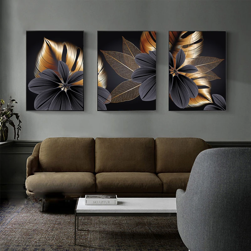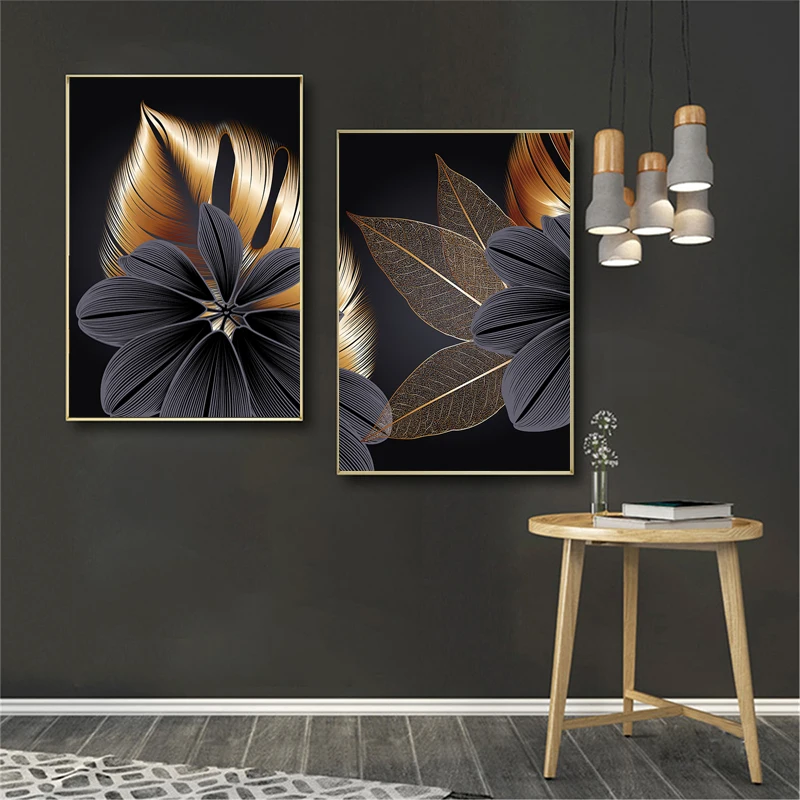 Nordic черные золотые листья холст Картины класса люкс Спальня украшение цветок настенные постеры картина для интерьера домашний декор