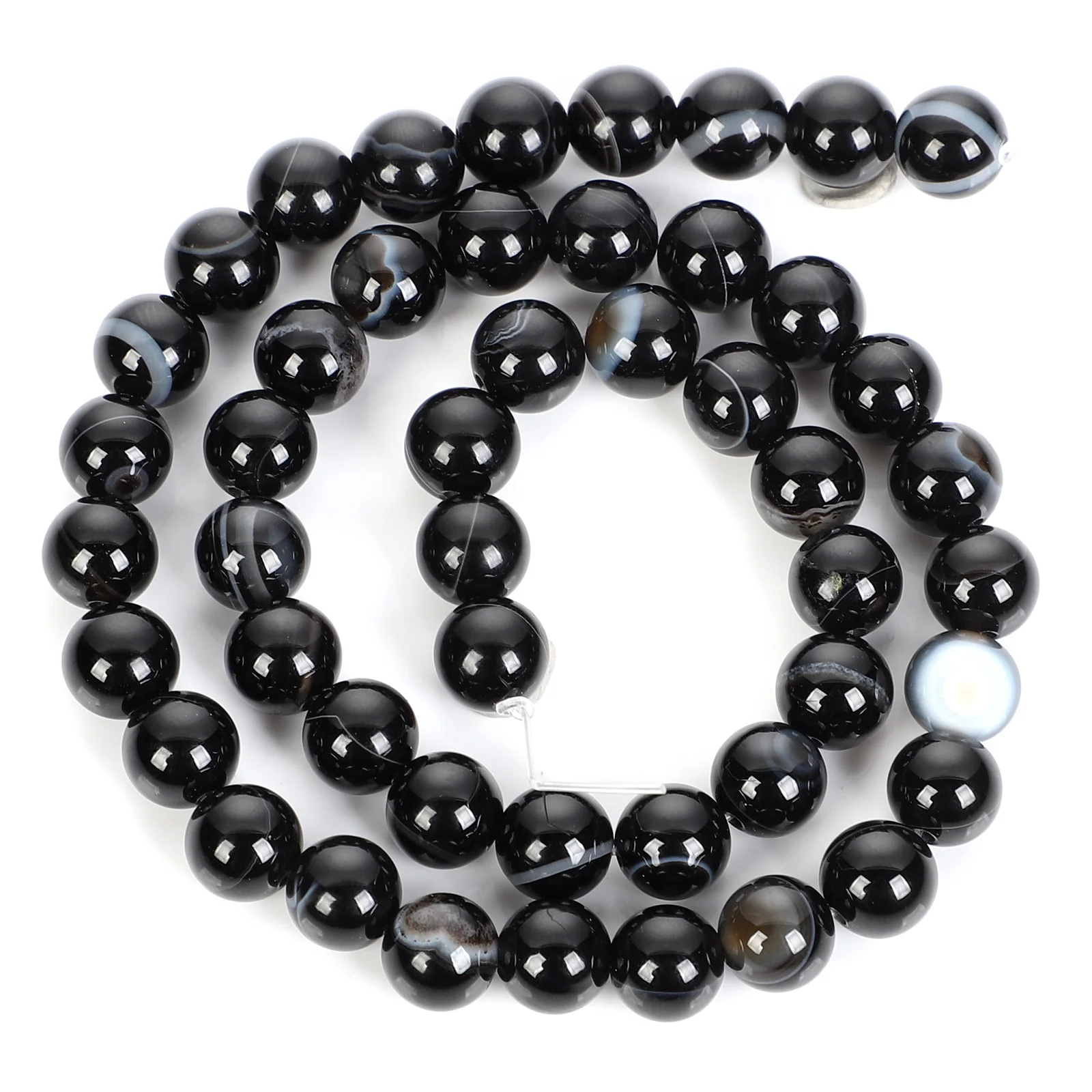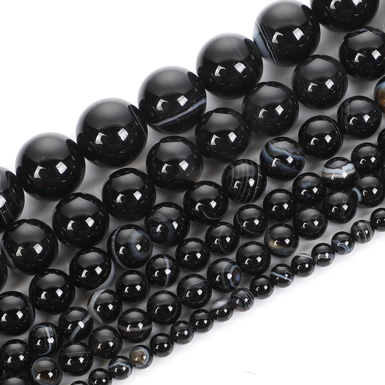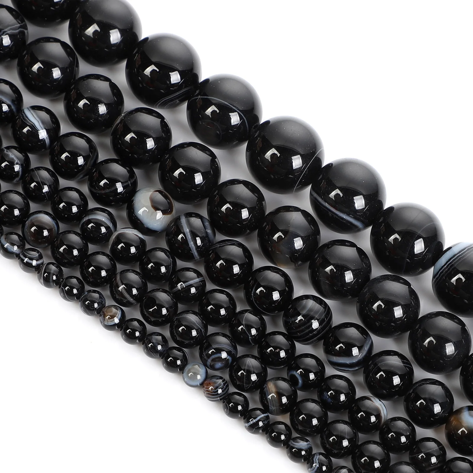 Бусины из натурального черного агата в полоску для изготовления ювелирных изделий, рукоделия, браслетов, нитка 4-12 мм