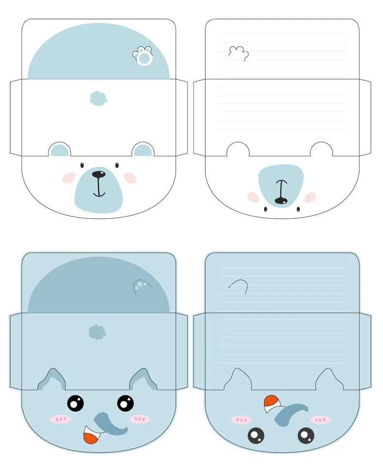 Милый бумажный конверт с надписями, с мультяшными животными, блокно...