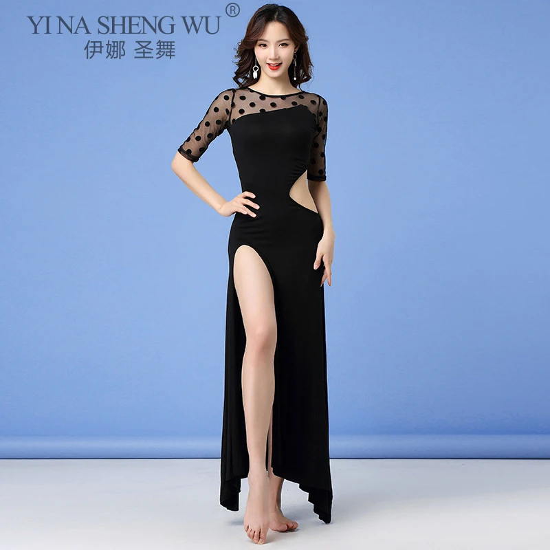 Женский костюм для танца живота, модал цельнокроеный сарафан, костюм для тренировок и выступлений, длинное Сетчатое платье для танца живота, Новинка