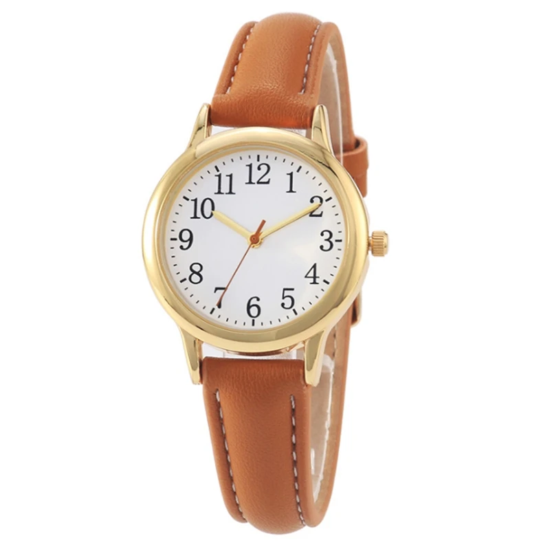 Женские наручные часы с японским механизмом и кожаным ремешком, часы с арабскими цифрами, женские кварцевые часы, часы для девушек