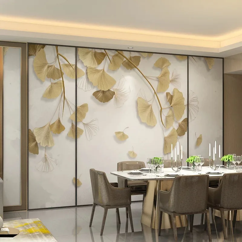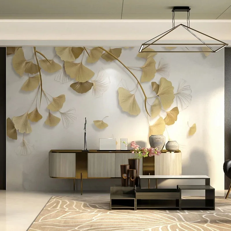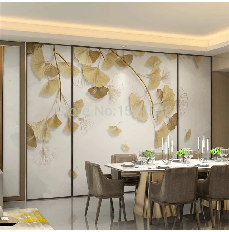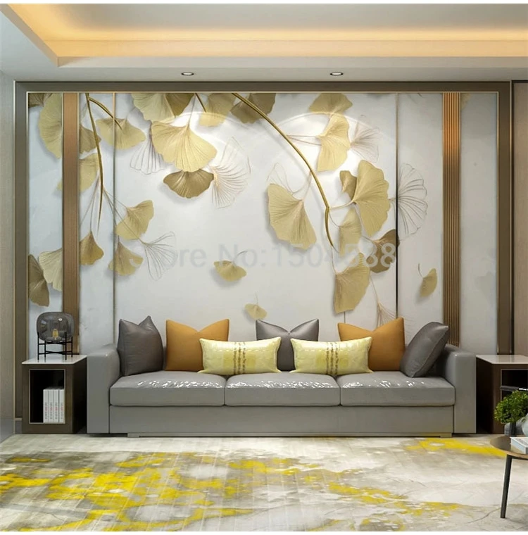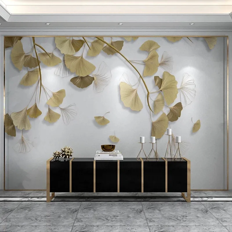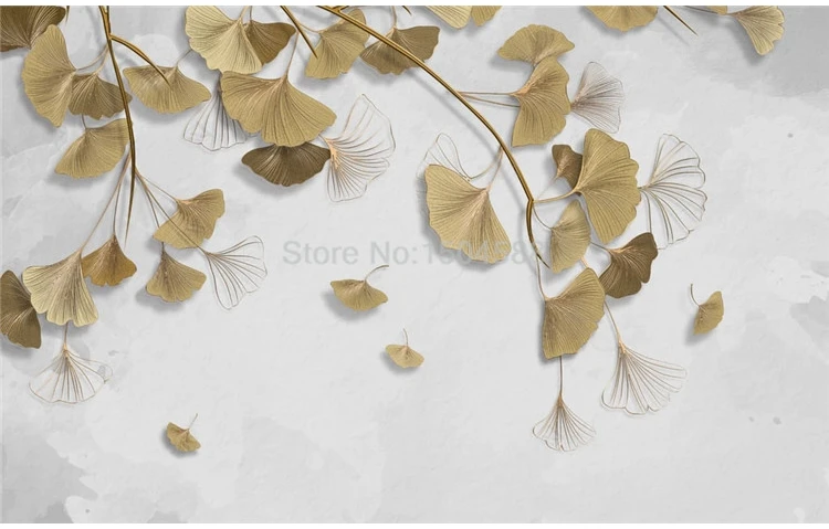Пользовательские Настенные обои Современная мода светильник класса люкс 3D золотистым тиснением линия листьев гинкго обои для гостиной комнаты, декоративная живопись