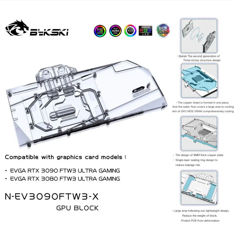 ProductBykski 3090 3080 GPU Water Cooling Block For EVGA RTX3090 3080 FTW3 UL