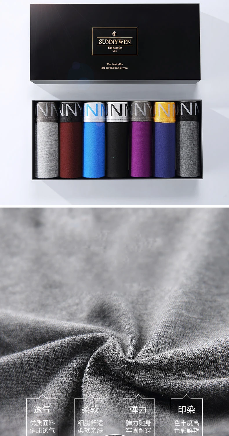 Трусы-боксеры мужские 7 шт.лот, нижнее белье из модала, пикантные дышащие, эластичные, удобные шорты, нижнее белье