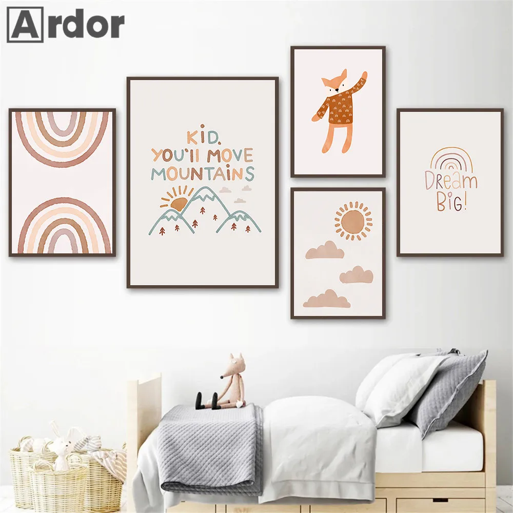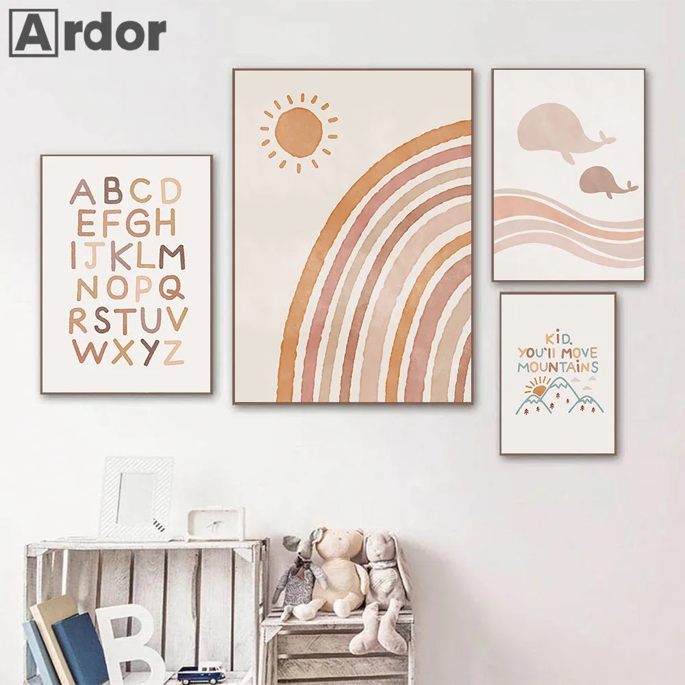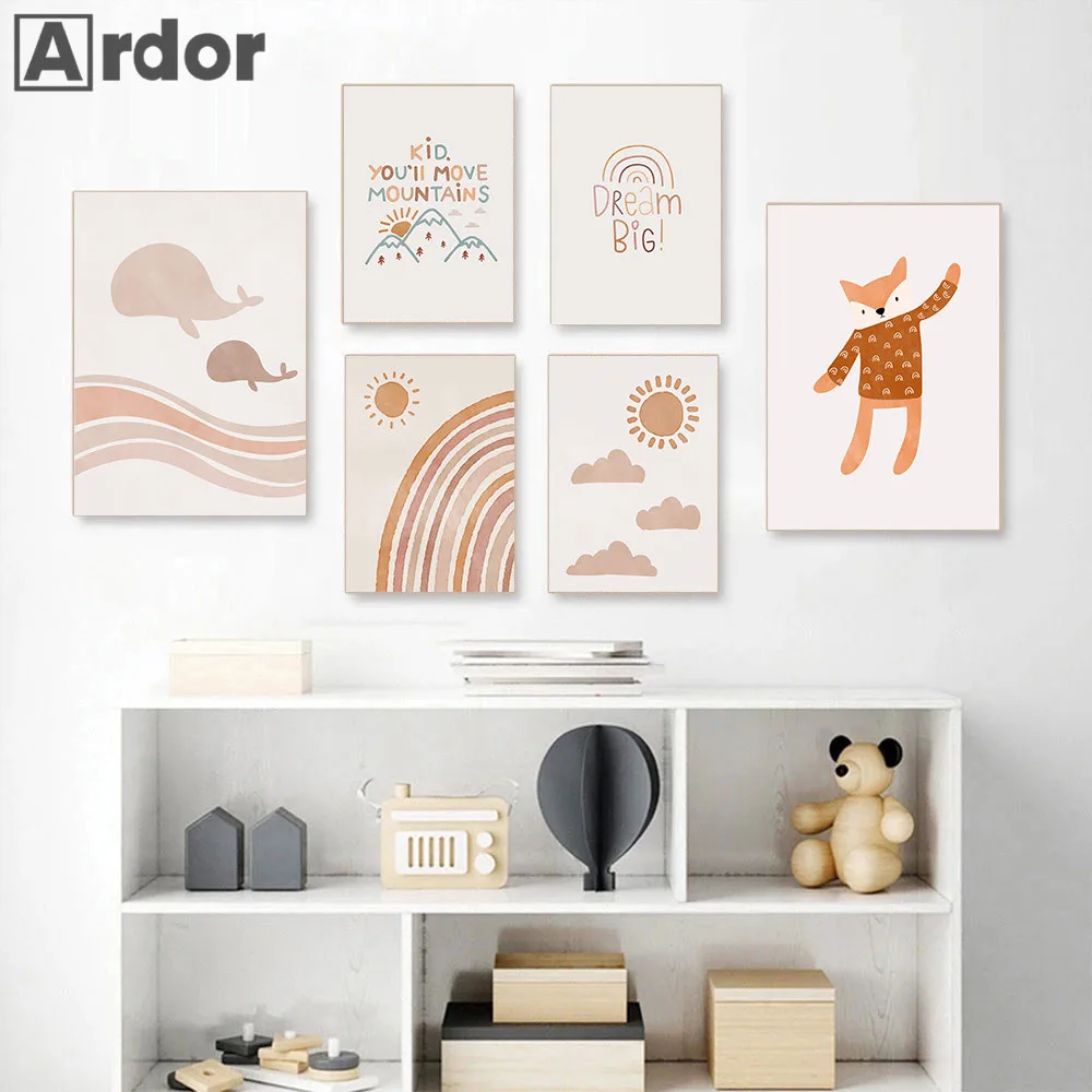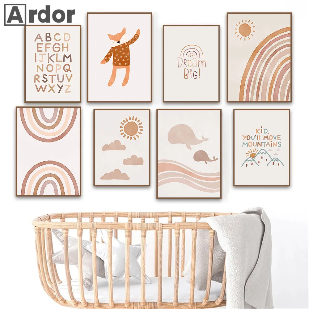 Настенный художественный постер ABC, солнце, облака, радуга, Картина на холсте, Искусственная лиса, плакаты с Китом, бохо, настенные картины, декор для детской комнаты